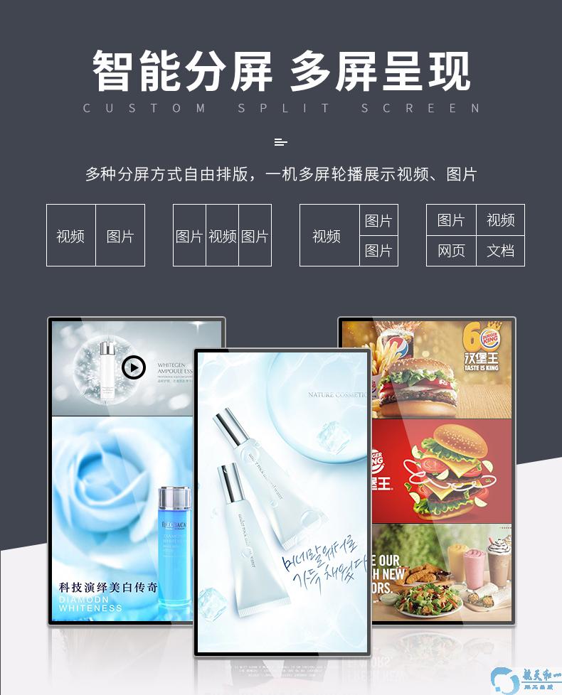 1,播出系统播放的节目内容支持多种格式的素材,包括:图片、视频、音频、字幕、日期、时间、星期、天气、网页、word,excel,PPT,PDF 文档、RSS、流媒体、图片视频混播。 2,自办节目智能播出系统支持滚动字幕播出编辑管理,并支持添加多条字幕。 3,自办频道智能播出系统支持多种格式的素材内容同时全屏播放,支持轮动播出。 4,自办频道智能播出系统支持2分屏、3分屏、4分屏等任意分屏播放。 5,自办频道节目智能播出系统支持横屏竖屏自由切换播放模式。 6,自办频道智能播出系统支持多时段智能开关机,定时播放。 7,信息发布系统支持播出内容远程发布,集中管控,统一管理。 8,自办频道智能播出系统支持U盘离线更新内容,自动播放,即插即播。 9,信息发布系统支持远程监控播放终端播放情况,通过截图查看到播放终端显示画面 10,广告播放器机支持远程删除播放终端已经下载的节目素材 11,广告播放器机支持图片播放特效切换(拥有 14 种图片切换特效) 自办电视频道节目智能播出系统产品技术参数: 1,CPU:RK3399;架构:六核、双Cortex-A72+四Cortex-A53,最高主频1.8GHz;系统:安卓10.0;内存:4G;存储:32g。 2,视频播放支持4K 10bits h.265/h.264视频解码,1080p多格式(VC-1,MPEG-1/2/4,VP8)视频解码输出。 3,音频播放支持MP3、OGG、AAC、APE、AC3等音频编码格式播放。 4,图片浏览支持JPG、BMP、PNG、GIF等图片格式播放。